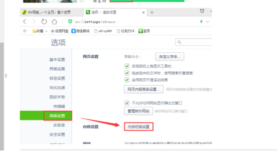 ![]() 點擊設(shè)置按鈕找到高級設(shè)置-內(nèi)核切換設(shè)置(如圖)。