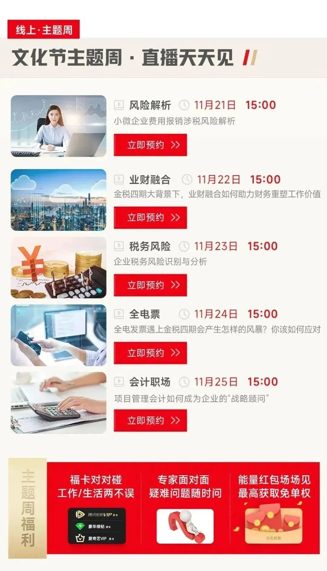 發(fā)表時間:2022-11-15 22:01作者:幫助會計成長的 點(diǎn)擊上方「暢捷通」立即關(guān)注 Chanjet 伴隨著經(jīng)營管理的發(fā)展,財務(wù)工作在企業(yè)里的地位也愈發(fā)重要,財務(wù)數(shù)據(jù)的搜集、整理和加工將成為未來企業(yè)數(shù)智化決策的根基所在。當(dāng)然這也對財務(wù)人員提出了更高的要求。對數(shù)智化時代的會計人而言,必須具備數(shù)智化新思維、新視角,同時具備新工具的應(yīng)用能力。 每年會計文化節(jié),暢捷通都會給會計朋友帶來行業(yè)前沿的發(fā)展趨勢、財稅干貨分享以及數(shù)智化的財稅工具。今年暢捷通第15屆會計文化節(jié),將于11月18日以「數(shù)智業(yè)財 暢享“會”樂」為主題盛大開啟,百萬會計聚到一起,“傳遞知識、共享歡樂”,通過數(shù)智化手段,提高會計人員的技能,實(shí)現(xiàn)會計個人職業(yè)生涯的蛻變。 ![]() 今年會計文化節(jié)暢捷通還給會計朋友們準(zhǔn)備了多重驚喜福利,那么今年的會計文化節(jié)與歷年文化節(jié)有哪些不同呢?會給大家哪些驚喜呢?話不多說,快來一起看看吧! 1 活動提前開啟,遇見不一樣的精彩 第十五屆會計文化節(jié)分為線上和線下兩部分,其中線上文化節(jié)分為三個時段,分別為: 會計文化節(jié)預(yù)熱期:11月8日至11月17日,搶參與5大福利卡券。 會計文化節(jié)開門紅直播日:11月18日下午14:00開始,看直播,享折扣、搶紅包,抽免單。 會計文化節(jié)主題周:11月19日-11月25日 看直播,享折扣、搶卡券。 ![]() 在預(yù)熱期,暢捷通為大家準(zhǔn)備了多場財稅直播及文化節(jié)預(yù)告內(nèi)容,這些課只講一線財稅人用得上的知識,濃縮的干貨,讓您在最短時間內(nèi)吸收并落地應(yīng)用,精準(zhǔn)把握政策,有據(jù)可查,在金稅四期即將來臨之際,讓企業(yè)提前發(fā)現(xiàn)可能存在的稅務(wù)風(fēng)險點(diǎn),避免被稅局稽查! 左右滑動查看更多直播預(yù)告海報 2 文化節(jié)見面禮,千張卡券等你來領(lǐng) 文化節(jié)預(yù)熱期,暢捷通為會計朋友們準(zhǔn)備了文化節(jié)見面禮,分別是:曉紅說稅、暢學(xué)卡、騰訊視頻VIP月卡,您不僅能提升自身專業(yè)能力、緊跟財稅新政解析,還能在繁重的工作學(xué)習(xí)之余,追追劇,緩解一整天的疲憊,文化節(jié)見面禮名額有限,先搶先得。 除了學(xué)習(xí)卡、視頻娛樂卡外,重磅壓軸的「優(yōu)惠券」也為大家奉上,會計文化節(jié)是會計人的節(jié)日,一定要把補(bǔ)貼補(bǔ)到您心坎里,50元直降券限時領(lǐng),下單立減,領(lǐng)券再購買福利加倍~ ![]() 3 直播間快搶云產(chǎn)品,紅包雨享不停 11月18日會計文化節(jié)啟動日直播當(dāng)天,暢捷通云產(chǎn)品:好會計、易代賬、好生意、好業(yè)財不僅有折扣,還有「免單」幸運(yùn)獎,直播間狂撒多輪「紅包雨」,下單即有多重專屬禮品贈送,您以為只有這些?您還可以參與下單抽獎,禮品讓您拿到手軟。 ![]() ![]() 4 別錯過,文化節(jié)直播周給你滿格能量 本屆文化節(jié)還為您準(zhǔn)備了「文化節(jié)主題周」的直播課程,在會計轉(zhuǎn)型與金稅四期的雙重加持下,會計這份工作再也不是“鐵飯碗”,認(rèn)清行業(yè)趨勢提升財稅實(shí)務(wù)能力迫在眉睫,文化節(jié)直播周給你滿格能量,讓你快樂工作。 ![]() 5 百城千場,文化節(jié)首發(fā)場揭曉 在即將開啟的百城千場「會計文化節(jié)」線下首發(fā)場也將揭曉,全國首發(fā)線下場文化節(jié)活動您可以就近參加,若要參加線下場文化節(jié)的活動,請聯(lián)系當(dāng)?shù)亍阜?wù)商」咨詢具體參與事宜。點(diǎn)擊“閱讀原文”進(jìn)入活動頁面,即刻預(yù)約。 ![]() 【十五年·在一年】會計文化節(jié)主題宣傳片,在11月18日 14:00 直播間首發(fā)上市,敬請期待。 ![]() 暢捷通第十五屆會計文化節(jié) 期待您的到來 為您準(zhǔn)備了多重福利 心動不如行動 錯過這次,再等一年! ?推薦閱讀? 財報 | 暢捷通三季度SaaS收入提升55% 獲獎 | T+Cloud入選產(chǎn)業(yè)創(chuàng)新成果 獲獎 | 暢捷通榮獲“最佳實(shí)踐獎” 閱讀原文 立即體驗(yàn) |