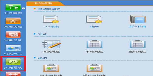 反記賬的操作!在U8界面點(diǎn)擊選擇實(shí)施導(dǎo)航。