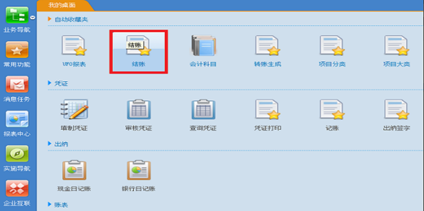 用友U8的反結(jié)賬是在結(jié)賬功能中實(shí)現(xiàn)的,在軟件中,選擇結(jié)賬圖標(biāo)