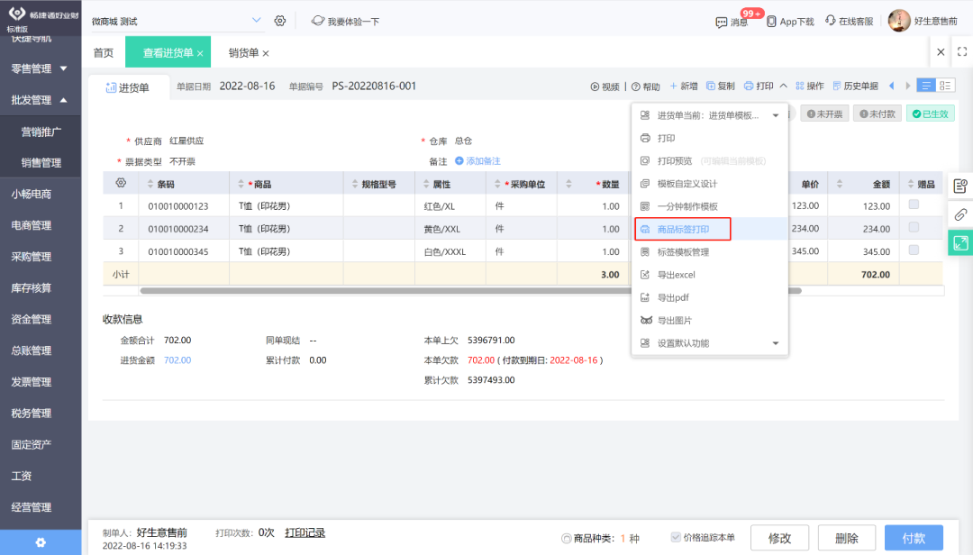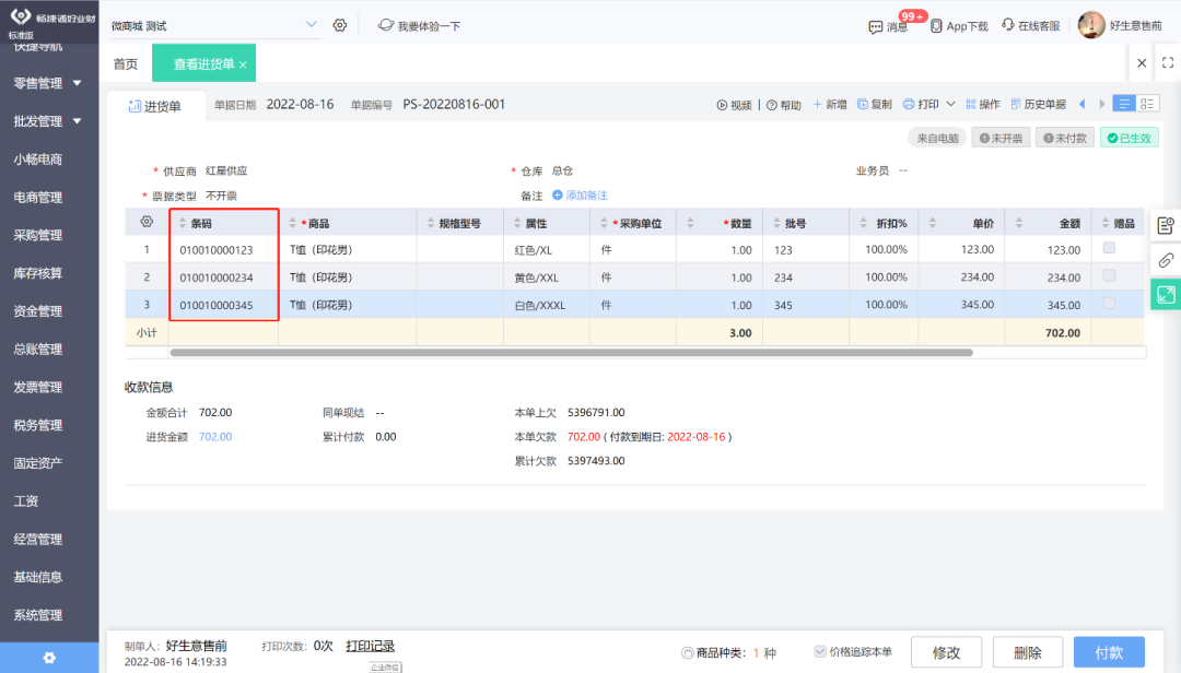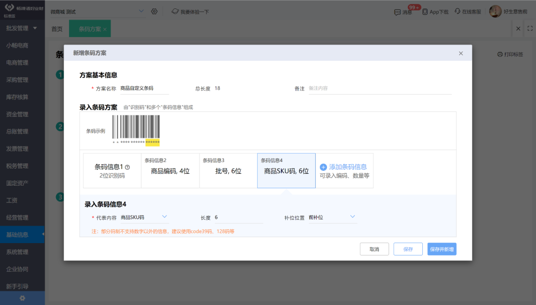 例如:批發(fā)商通過自定義條碼實(shí)現(xiàn)快速、精確地處理訂貨、送貨,做到庫(kù)存管理精確、詳細(xì),防止資金積壓;零售商掌握暢銷商品、結(jié)帳更加迅速,精確;便利商品價(jià)格的變更、防止工作人員舞弊等。 好業(yè)財(cái),幫您輕松自定義條形碼 操作步驟 第一步:進(jìn)入好生意/好業(yè)財(cái),點(diǎn)擊菜單系統(tǒng)管理,選擇選項(xiàng)設(shè)置,庫(kù)存設(shè)置,啟用自定義條碼。 ![]() ![]() 第二步:設(shè)置完第一步,基礎(chǔ)信息會(huì)多出來(lái)2個(gè)菜單:條碼方案、條碼管理。 ![]() 第三步:新增條碼方案,根據(jù)企業(yè)對(duì)于商品的條碼定義,選擇條碼字段對(duì)應(yīng)的信息。 ![]() ![]() 第四步:新增商品時(shí),選擇該商品對(duì)應(yīng)的條碼方案。 ![]() ![]() 第五步:打印商品標(biāo)簽,并且貼在商品包裝上。 ![]() ![]() 第六步:銷售出庫(kù)、材料出庫(kù)、其他出庫(kù)時(shí),可以通過條碼掃描,進(jìn)行快速選擇對(duì)應(yīng)的商品進(jìn)行出庫(kù)操作。 ![]() ![]() 以上就是好生意/好業(yè)財(cái)條形碼的設(shè)置,你學(xué)會(huì)了嗎?還沒使用軟件的,抓緊注冊(cè)去體驗(yàn)吧~