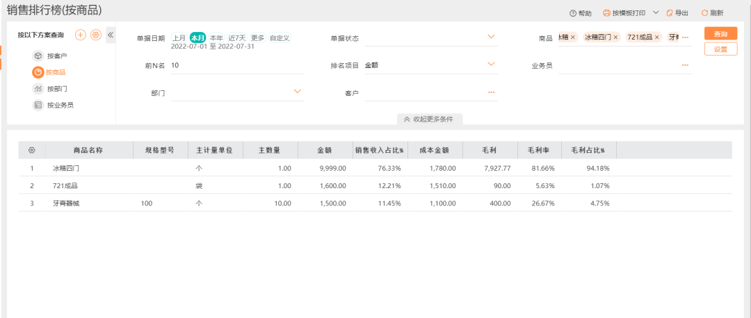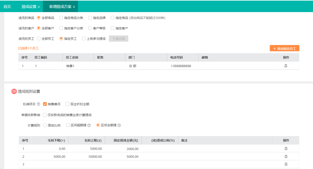 發(fā)表時間:2022-12-04 12:23作者:小管君 所有的公司碰到在銷售人員的提成制度時,總是有很多的問題和困擾。太低,留不住人;太高,公司就又覺得損失。搞得好,全公司上下一心,共同奮斗;搞不好,就上下爭利,鉤心斗角;還有些企業(yè)新老員工的提成制度也不同。所以,提成制度的設(shè)計就像是走高空的鋼索,要是設(shè)計不好,就會掉到萬丈深淵當(dāng)中。 在接下來介紹的這個家電代理的企業(yè)就面臨了新老員工提成算法不同的問題,那么他們是怎么解決的呢?和小編一起來看看吧~ 賀總是一家家電批零企業(yè)老板,之前做賬和業(yè)務(wù)員提成都是財務(wù)在表格里計算統(tǒng)計,很容易造成漏算、錯算,而且,每個月都要花大量時間去跟業(yè)務(wù)員對賬,很麻煩。 “我們對于不同業(yè)務(wù)員考核指標(biāo)是不一樣的,對于新業(yè)務(wù)員一般都是以擴量為主,所以用銷售額統(tǒng)計。對于老員工手里客戶多的一般都用實際利潤來提成?!?/span> ——賀總,沈陽某一線品牌家電代理商 那么,好生意是怎么解決這家公司的業(yè)務(wù)員提成需求的呢? 好生意解決方案 暢捷通高級售前顧問王淼工程師,根據(jù)客戶提出的提成計算需求,給出的方案是通過軟件的提成功能,按照不同業(yè)務(wù)員做提成方案區(qū)分,新員工按照銷售額來提,老員工按照毛利來提。同時也給后續(xù)提成方案制定優(yōu)化空間,比如超額完成怎么提成,未完成怎么提成。每個員工都可以單獨有一套獨立運算方案,解放人工計算易出錯的問題。 好生意支持6種常規(guī)提成方案,并且支持提成方案的深度設(shè)計。 ![]() 新員工按照銷售金額提成 解決方案:除了常規(guī)固定比例提成外,還可設(shè)置新員工激勵策略,例如銷售額在某個期間內(nèi)按照百分比提成。 ![]() 老員工按照毛利統(tǒng)計 解決方案:老員工前期可按照毛利比例提成。季度末或者年度末沖刺業(yè)績,可以按照區(qū)間完成度設(shè)置固定獎金包,或者超額完成后所有業(yè)績均按最大比例提成,大大提高老員工營銷熱情。 ![]() 提成方案統(tǒng)計全自動統(tǒng)計 解決方案:在提成統(tǒng)計報表中,可以實現(xiàn)銷冠排行榜。也可詳細(xì)分析提成來源,5秒即可完成一位員工對賬,大大提高核算效率。 ![]() ![]() 除此之外,好生意還能提供銷售排行報表,可按照當(dāng)前所有商品銷量、收入、毛利做排行榜,可直觀看看出哪種商品最能賺錢,哪種商品賺的多但是銷量不好等詳細(xì)數(shù)據(jù)。 ![]()
