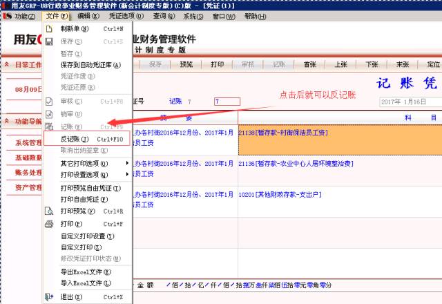 發(fā)表時間:2022-12-14 11:32作者:小管君 對于財務(wù)人員來說,想必一定會出現(xiàn)這樣的情況:憑證不小心記錯了、憑證需要重新修改、憑證需要刪除、需要修改以前月份的憑證、這種情況怎么辦?我們就需要用反記賬和反結(jié)賬的功能來實現(xiàn)。 在GRP-U8財務(wù)管理軟件中,憑證的反記賬反結(jié)賬等操作已經(jīng)不再隱藏,直接在系統(tǒng)的功能里面就可以調(diào)用,非常的方便。下面讓我們一起看一看具體操作吧! 1. 憑證的反記賬 首先可以打開你要反記賬的憑證,然后點擊左上角的“文件反記賬”, 就可以把憑證反記賬。