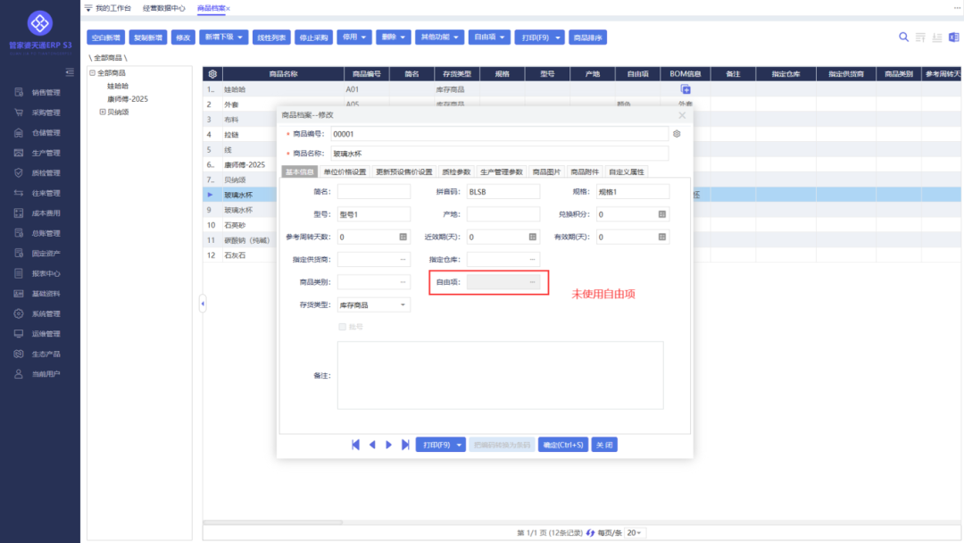 【天通ERP S系統(tǒng)】里,系統(tǒng)配置啟用了自由項(xiàng),但是商品若未使用自由項(xiàng),則在指尖工廠,不顯示出自由項(xiàng)。