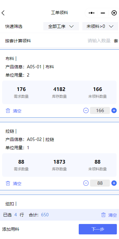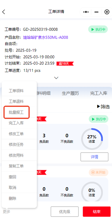 發(fā)表時(shí)間:2025-06-11 20:35作者:小管君 工單領(lǐng)退料 ![]() ![]() ![]() ![]() ![]() ![]() 支持移動(dòng)端工單領(lǐng)/退料: 1、支持篩選【投料工序】領(lǐng)/退料; 2、支持【多單位】領(lǐng)/退料。 支持移動(dòng)端、PC端查看領(lǐng)退料明細(xì)。 快速報(bào)工 移動(dòng)端快速報(bào)工,有3種方式【工單詳情-批量報(bào)工、任務(wù)列表-批量報(bào)工、任務(wù)列表-批量掃碼報(bào)工】。 其他功能 增工藝路線與產(chǎn)品關(guān)聯(lián),方便創(chuàng)建工單時(shí),選擇產(chǎn)品快速帶出對應(yīng)的工藝路線到“任務(wù)清單”。 對【移動(dòng)端、PC端】新建/修改/復(fù)制工單、工單詳情、工單里的用料明細(xì)等設(shè)置非必填字段的顯示/隱藏。 移動(dòng)端字體大小、顏色調(diào)整,部分界面顯示效果優(yōu)化等。 移動(dòng)端報(bào)工時(shí),支持掃工單標(biāo)簽二維碼,獲取工單編號(hào)。 系統(tǒng)配置增加【只能引入單據(jù)創(chuàng)建工單】,勾選后,只能引入單據(jù)創(chuàng)建工單。 移動(dòng)端工單的任務(wù)清單,支持上下拖動(dòng)工序排序,添加工序時(shí),選擇次序作為工序順序。 PC端支持刷新菜單,更新數(shù)據(jù)。 工單、任務(wù)頂部篩選,增加篩選條件(自定義字段、計(jì)劃數(shù)、良品數(shù)、不良品數(shù)等等)。 增加權(quán)限【允許查看庫存數(shù)量】,有權(quán)限的人才能在工單領(lǐng)料、退料、工單的用料明細(xì)等地方看到庫存數(shù)據(jù)。 PC端報(bào)工管理列表,顯示出工序自定義字段。 ![]() 更多管家婆軟件操作問題,可以聯(lián)系梁老師17374708361 長按識(shí)別二維碼添加好友,及時(shí)解答 ![]() |