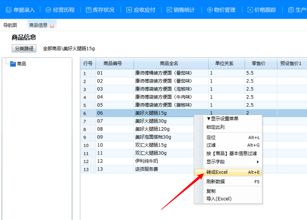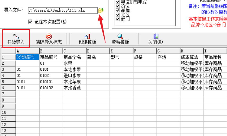 以輝煌ERP為例,在管家婆軟件的部分軟件中的基本信息主要包括了:基本信息 > 打開商品信息 > 點(diǎn)擊右鍵 > 轉(zhuǎn)成Excel > 導(dǎo)出數(shù)據(jù)基本信息 > 打開商品信息 > 點(diǎn)擊右下角打印 > 導(dǎo)出數(shù)據(jù)需要注意的是,其他基本信息的導(dǎo)出步驟也是如此,如存在分級的情況,則需要點(diǎn)擊右下方中的列表,將信息完全顯示后再導(dǎo)出。基本信息的導(dǎo)入包括:倉庫信息、商品信息、單位信息和庫存信息在輔助功能創(chuàng)建模板—導(dǎo)入導(dǎo)出—導(dǎo)入基本信息—創(chuàng)建模板—選擇模板保存路徑并命名,如:導(dǎo)入信息模板,點(diǎn)擊【保存】,創(chuàng)建模板即可。(模板中的字段不可修改,否則會出現(xiàn)導(dǎo)入失敗的情況!)在大類商品編號為01,名稱為水果,把水果進(jìn)行分類,分為本地水果和進(jìn)口水果,商品編號0101,商品名稱為本地水果,和編號0102,商品名稱進(jìn)口水果。再將本地水果進(jìn)行分類,分為本地蘋果和香蕉,商品編號為010101,商品名稱為本地蘋果,商品編號010102。 1 輔助功能—導(dǎo)入導(dǎo)出—導(dǎo)入基本信息—導(dǎo)入數(shù)據(jù)選擇模板所在路徑—雙擊文件—打開—【導(dǎo)入數(shù)據(jù)】 3 提示導(dǎo)入完成—基本信息—商品信息查詢期初庫存有數(shù)量,是否支持在開賬前覆蓋導(dǎo)入或追加導(dǎo)入庫存數(shù)量?