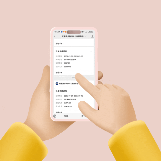 發(fā)表時(shí)間:2025-10-23 16:33作者:小管君 ![]() 當(dāng)銷售單或采購單過賬后,系統(tǒng)將自動(dòng)觸發(fā)一條消息通知 ![]() 用戶通過移動(dòng)設(shè)備接收微信服務(wù)號(hào)推送的消息提醒 ![]() 點(diǎn)擊即可查看消息的詳細(xì)內(nèi)容,還可添加備注,這些備注信息會(huì)同步回傳到ERP系統(tǒng)中 ![]() 當(dāng)發(fā)起與往來單位的對(duì)賬流程時(shí),用戶可點(diǎn)擊發(fā)送對(duì)賬單,系統(tǒng)即會(huì)向相關(guān)結(jié)算單指定的對(duì)賬單接收人員推送消息提醒 ![]() 用戶通過移動(dòng)設(shè)備可查看往來對(duì)賬單 ![]() 可以點(diǎn)擊查看此單據(jù)的具體詳情,還可添加備注,所有備注內(nèi)容將作為反饋更新至ERP系統(tǒng) ![]() ![]() 更多管家婆軟件操作問題,可以聯(lián)系梁老師17374708361 長按識(shí)別二維碼添加好友,及時(shí)解答 ![]() |