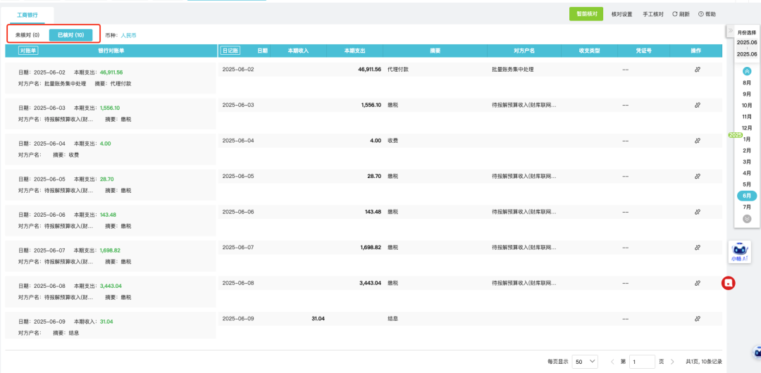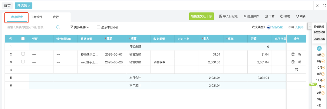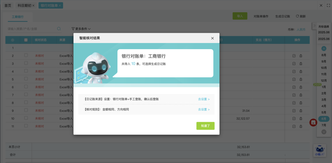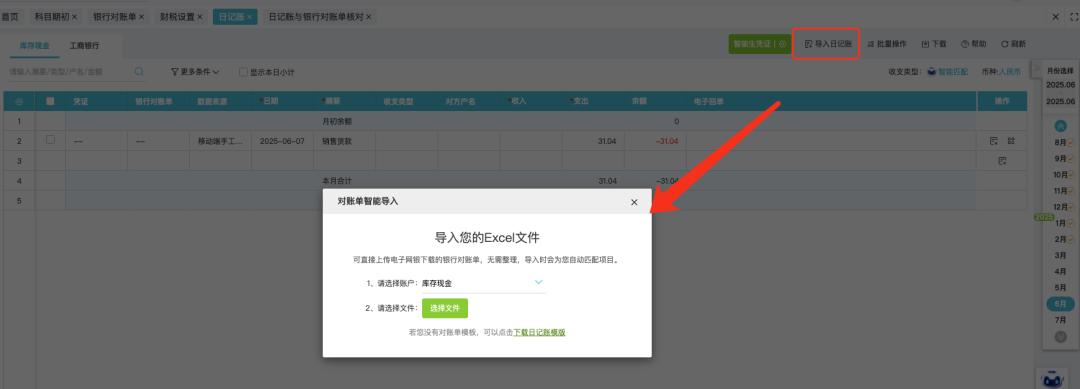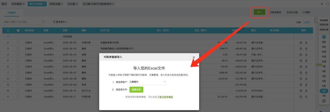 發(fā)表時(shí)間:2025-10-23 16:31作者:小管君 ![]() 1. 功能用途該功能用于企業(yè)資金管理過(guò)程中記錄資金交易情況,系統(tǒng)提供多種資金管理方式,適用不同管理方式的企業(yè)核算。包括:支持僅以銀行數(shù)據(jù)作為入賬依據(jù)的方式;支持出納日常登記日記賬明細(xì),并與銀行外部數(shù)據(jù)進(jìn)行比對(duì); 銀行外部數(shù)據(jù)采集方式支持:手工錄入、銀行授權(quán)后自動(dòng)拉取、銀行回單導(dǎo)入、excel文件導(dǎo)入等方式。 應(yīng)用場(chǎng)景描述: 通常情況下,如果會(huì)計(jì)核算上有銀企對(duì)賬訴求,可以將外部銀行數(shù)據(jù)導(dǎo)入在銀行對(duì)賬單,日常出納做日記賬登記,再由銀行對(duì)賬單與日記賬數(shù)據(jù)進(jìn)行核對(duì)檢查。 如果企業(yè)核算沒(méi)有更高的要求,高度信任銀行的外部數(shù)據(jù)準(zhǔn)確性,可以直接在日記賬模塊下導(dǎo)入銀行數(shù)據(jù),直接用銀行數(shù)據(jù)生成日記賬并完成做賬。 2. 業(yè)務(wù)場(chǎng)景操作說(shuō)明a. 當(dāng)會(huì)計(jì)需要錄入現(xiàn)金賬時(shí),在【資金管理】-【日記賬】模塊下【庫(kù)存現(xiàn)金】中手工錄入現(xiàn)金賬。![]() b. 當(dāng)會(huì)計(jì)拿到銀行對(duì)賬單后,可以通過(guò)【資金管理】-【銀行對(duì)賬單】或【日記賬】功能可以進(jìn)行銀行對(duì)賬單管理。操作流程為: 1.設(shè)置銀行對(duì)賬單期初——2.導(dǎo)入或拉取銀行對(duì)賬單——3.系統(tǒng)智能核對(duì)——4.完成核對(duì),生成銀行對(duì)賬單數(shù)據(jù)。 ![]() 具體操作: 1.建立銀行賬號(hào)并維護(hù)科目期初 銀行對(duì)賬單是為了記錄銀行外部數(shù)據(jù)的,功能使用的前提需要在會(huì)計(jì)科目上創(chuàng)建對(duì)應(yīng)的銀行信息,包括開戶銀行名稱、銀行賬號(hào)、賬號(hào)名稱、客戶號(hào)及外幣核算的幣種(如涉及外幣核算); 功能使用上會(huì)按照銀行賬號(hào)對(duì)應(yīng)拉取銀行數(shù)據(jù)并存儲(chǔ)在指定科目上。 ![]() 完成科目銀行信息錄入后,可以在期初余額處錄入使用系統(tǒng)前的銀行期初余額,以保證后續(xù)使用過(guò)程中數(shù)據(jù)余額連貫性和準(zhǔn)確性。 ![]() 2.銀行對(duì)賬單導(dǎo)入 系統(tǒng)支持Excel格式銀行對(duì)賬單(也就是銀行流水)或者PDF的回單智能導(dǎo)入,用戶可以從電子銀行下載Excel格式的銀行對(duì)賬單(或者回單)直接導(dǎo)入,也可以下載系統(tǒng)模版后填寫整理后上傳。 ![]() ![]() ![]() 3.銀行對(duì)賬單自動(dòng)判重 注:若存在重復(fù)一條也不導(dǎo)入。