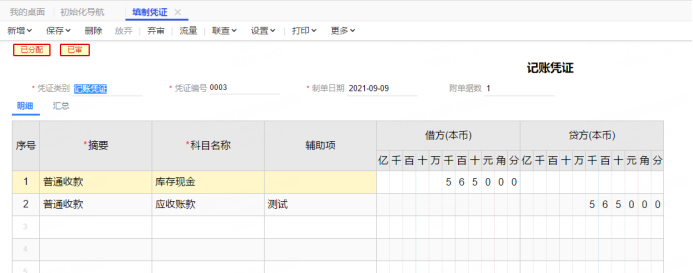 收到客戶給的錢,生成憑證是這樣子的: