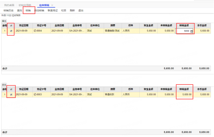 選種要核銷的憑證,填寫上核銷的金額,點(diǎn)表頭的核銷
