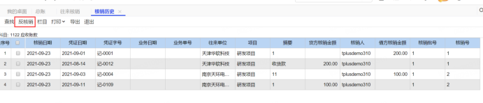 核銷記錄查詢一目了然,可以查詢核銷日期,憑證號(hào),對(duì)應(yīng)往來單位以及核銷金額,如果發(fā)現(xiàn)核銷有問題,可以隨時(shí)取消核銷。