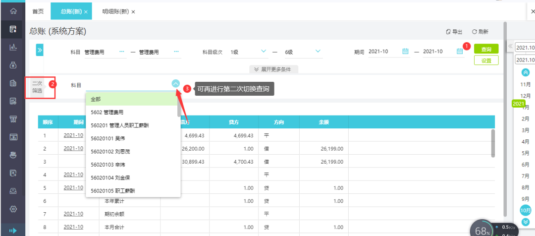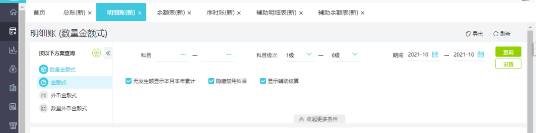 敲黑板 劃重點(diǎn) 易代賬迭代功能搶先知: 1、賬簿優(yōu)化 2、期末結(jié)轉(zhuǎn)模塊小優(yōu)化 3、一鍵報(bào)稅模塊小優(yōu)化 4、發(fā)票、稅表功能小優(yōu)化 ![]() 一、賬簿優(yōu)化 客戶應(yīng)用場(chǎng)景: 五金服寶貿(mào)易有限公司會(huì)計(jì)小劉查詢賬簿的時(shí)候想要具體查詢到某個(gè)科目的精準(zhǔn)結(jié)果,但是每次查詢篩選結(jié)果并不能達(dá)到預(yù)期,并且每次想要查詢這個(gè)科目都要重新選擇下查詢方案,那有沒有可以更智能的查詢方法呢?接下來就看我們系統(tǒng)的優(yōu)化吧! 產(chǎn)品解決方案如下: 01 賬簿查詢整體優(yōu)化,查詢條件可以根據(jù)需求進(jìn)行個(gè)性化配置,欄目支持拖拽列寬 系統(tǒng)新增賬簿 ![]() 1、總賬(新)、明細(xì)賬(新) 點(diǎn)擊左邊的方案查詢旁的齒輪圖標(biāo)可查看設(shè)置的方案,對(duì)于總賬系統(tǒng)預(yù)置了1種方案,明細(xì)賬系統(tǒng)預(yù)置了4種方案,系統(tǒng)預(yù)置的方案不能編輯、修改,只能恢復(fù)系統(tǒng)默認(rèn)設(shè)置 ![]() ![]() 點(diǎn)擊右邊的設(shè)置,勾選對(duì)應(yīng)的查詢字段設(shè)置查詢條件,可靈活設(shè)置查詢字段,數(shù)量金額明細(xì)賬/外幣金額明細(xì)賬增加按照科目級(jí)次和期間進(jìn)行查詢,老版本無此功能 ![]() ![]() 對(duì)于分組篩選,可選擇分組或者二次篩選 ![]() ①、分組查詢:按照某一個(gè)指定的項(xiàng)目(科目或者輔助項(xiàng)等)分成一個(gè)小組進(jìn)行展示,總賬、明細(xì)賬只支持按科目進(jìn)行分組,分組查詢比二次篩選多了科目編碼和科目名稱這2列 ![]() ②、二次篩選:是指第一次篩選后可以在查詢結(jié)果的范圍內(nèi)進(jìn)行再次過濾查詢。 示例場(chǎng)景:選擇了管理費(fèi)用的所有科目,在列表中可以把科目放在表頭,二次篩選分別按照不同的費(fèi)用查詢 ![]()
