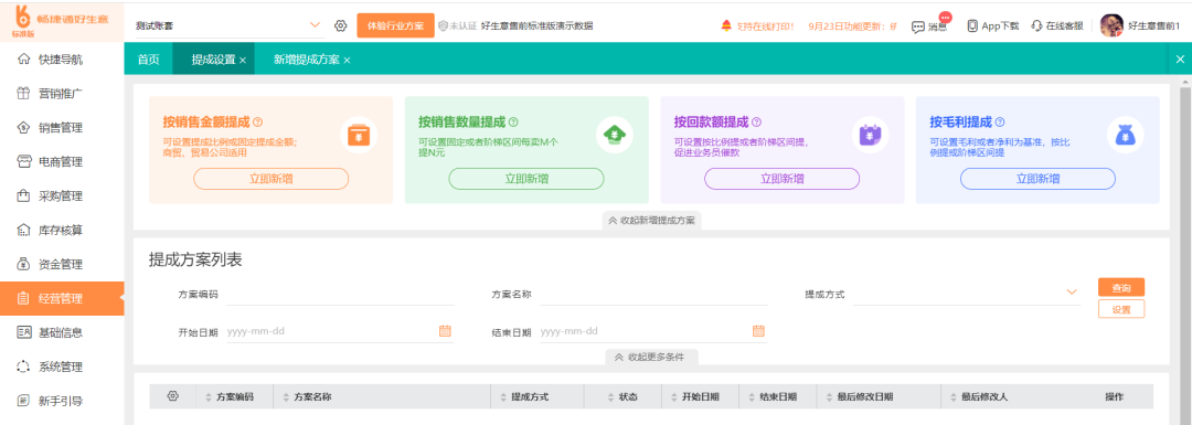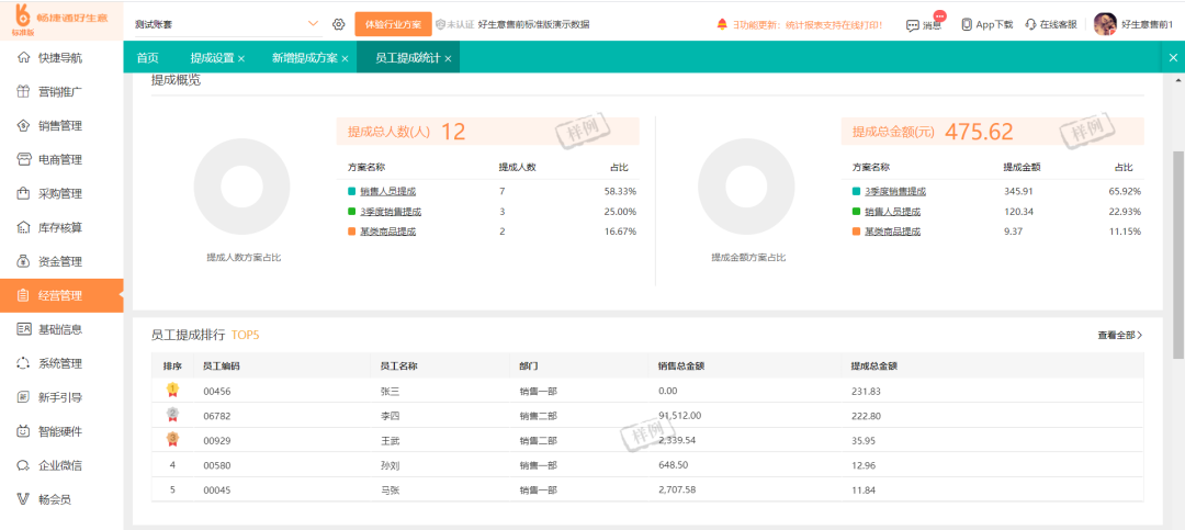 3、業(yè)務(wù)員提成核算難 根據(jù)銷售額來計(jì)算業(yè)務(wù)員提成,在好生意中有提成設(shè)置和提成統(tǒng)計(jì),按照規(guī)則設(shè)置提成方案,系統(tǒng)自動(dòng)統(tǒng)計(jì)提成金額及排行,很方便老板查看。
