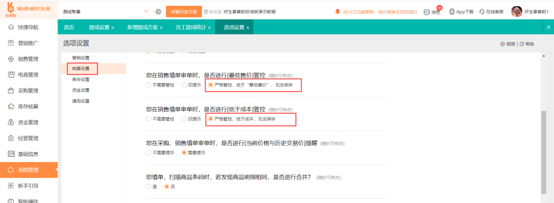 避免出現(xiàn)惡意低價(jià)銷售,可以設(shè)置低于成本價(jià)和最低售價(jià)不允許開單,保障不虧本銷售;