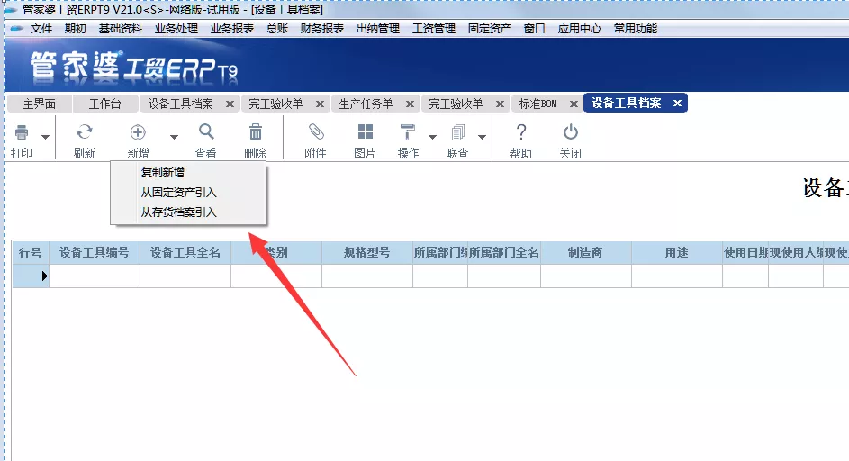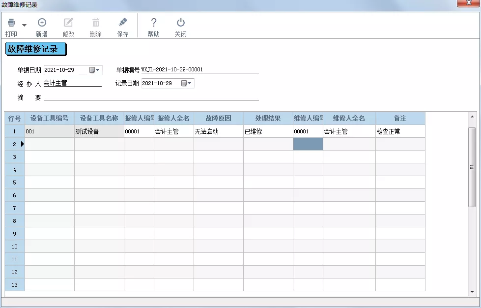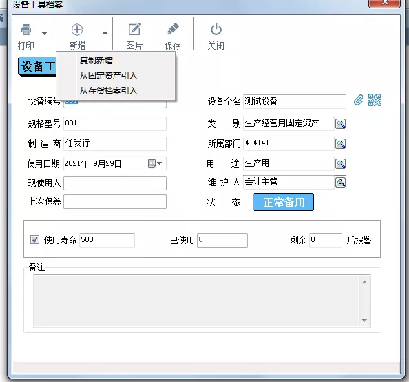 智能生產(chǎn)的普及,讓工廠中的機(jī)器設(shè)備在生產(chǎn)過(guò)程中開(kāi)始發(fā)揮越來(lái)越重要的作用。生產(chǎn)設(shè)備的正常運(yùn)營(yíng)與否直接關(guān)聯(lián)著企業(yè)的產(chǎn)能與成本,因此,預(yù)防設(shè)備損壞,增加設(shè)備使用壽命,是工廠實(shí)現(xiàn)降本增效的重要一環(huán)。如何做好設(shè)備的維護(hù)與管理呢?管家婆工貿(mào)ERP來(lái)幫你! 在工貿(mào)18.9-18.5版本中,設(shè)備管理需要安裝單獨(dú)的插件【設(shè)備工具管理】來(lái)實(shí)現(xiàn),而從19.0版本開(kāi)始,我們將“設(shè)備工具管理檔案”功能內(nèi)置軟件,通過(guò)對(duì)設(shè)備的計(jì)劃保養(yǎng)以及相關(guān)信息記錄的管理,讓機(jī)器設(shè)備發(fā)揮最大功能,為工廠創(chuàng)造更多利潤(rùn)。 下面,我們就以工貿(mào)T9 21.0版本為例來(lái)了解一下吧。 01 管理入口 【業(yè)務(wù)處理】--【設(shè)備工具管理】  02 功能說(shuō)明 1、保養(yǎng)項(xiàng)目設(shè)置 通過(guò)【業(yè)務(wù)處理】--【設(shè)備工具管理】--【保養(yǎng)項(xiàng)目設(shè)置】,可以設(shè)置保養(yǎng)項(xiàng)目,選擇保養(yǎng)項(xiàng)目時(shí),還可關(guān)聯(lián)顯示保養(yǎng)標(biāo)準(zhǔn)和操作要點(diǎn)。  2、設(shè)備工具檔案 通過(guò)【業(yè)務(wù)處理】--【設(shè)備工具管理】--【設(shè)備工具檔案】可手動(dòng)添加設(shè)備,或從存貨和固定資產(chǎn)里面引入添加設(shè)備工具的詳細(xì)信息,如使用壽命、上傳圖片等。 注意:使用壽命是按次統(tǒng)計(jì),還回單上可填寫使用次數(shù),默認(rèn)使用次數(shù)為1??稍诮缑媛?lián)查,查詢對(duì)應(yīng)的保養(yǎng)、借出/還回、維修等記錄。   3、保養(yǎng)計(jì)劃單 通過(guò)【業(yè)務(wù)處理】--【設(shè)備工具管理】--【保養(yǎng)計(jì)劃單】可設(shè)置定時(shí)對(duì)設(shè)備工具進(jìn)行保養(yǎng) 注意: ①支持按天/周/月設(shè)定設(shè)備工具的保養(yǎng)周期,在設(shè)備保養(yǎng)后會(huì)自動(dòng)將保養(yǎng)日期填寫到上次保養(yǎng)中,并根據(jù)保養(yǎng)周期自動(dòng)計(jì)算下次保養(yǎng)時(shí)間點(diǎn),保養(yǎng)截止日期設(shè)置要大于下次保養(yǎng)時(shí)間。 ②如到規(guī)定保養(yǎng)時(shí)間還未保養(yǎng),業(yè)務(wù)報(bào)表—報(bào)警簿中會(huì)顯示警告 ③可多選保養(yǎng)項(xiàng)目  4、保養(yǎng)記錄 通過(guò)【業(yè)務(wù)處理】—【設(shè)備工具管理】—【保養(yǎng)記錄】,可對(duì)設(shè)備工具進(jìn)行保養(yǎng) 注意:錄入保養(yǎng)的設(shè)備工具后,可雙擊保養(yǎng)計(jì)劃單選擇預(yù)先做好的保養(yǎng)計(jì)劃單自動(dòng)帶入。如臨時(shí)保養(yǎng),也可不選保養(yǎng)計(jì)劃單,手工選擇保養(yǎng)項(xiàng)目。選擇了保養(yǎng)計(jì)劃單生成保養(yǎng)記錄保存后,會(huì)自動(dòng)更新關(guān)聯(lián)保養(yǎng)計(jì)劃單的上次保養(yǎng)時(shí)間,同時(shí),也可在設(shè)備工具檔案中看到對(duì)應(yīng)的上次保養(yǎng)時(shí)間。   5、借出還回單 可通過(guò)【業(yè)務(wù)處理】—【設(shè)備工具管理】找到借出單及還回單 注意:借出單保存后,該設(shè)備工具檔案的狀態(tài)顯示為使用中。且現(xiàn)使用人會(huì)自動(dòng)填寫為借用人,未歸還的設(shè)備工具不允許借出。歸還單保存后,該設(shè)備工具檔案的狀態(tài)顯示為正常備用。歸還單上可填寫使用次數(shù),默認(rèn)為1。    6、故障維修記錄 設(shè)備工具發(fā)生故障及進(jìn)行維修后,可錄入故障維修記錄 ,方便查詢及后續(xù)保養(yǎng)。 注意:雙擊表體設(shè)備工具編號(hào)或設(shè)備工具名稱列,可選擇設(shè)備工具錄入 故障維修記錄 也可通過(guò)設(shè)備工具檔案生單。  03 記錄查詢 通過(guò)【業(yè)務(wù)報(bào)表】—【設(shè)備工具管理】查看對(duì)應(yīng)保養(yǎng)、借出還回、維修明細(xì) 注意:對(duì)應(yīng)查詢條件也可在設(shè)備工具檔案中的聯(lián)查查看對(duì)應(yīng)記錄。    E.N.D 好會(huì)計(jì)--用友31年品質(zhì)傳承 智能云財(cái)務(wù)助力會(huì)計(jì)轉(zhuǎn)型