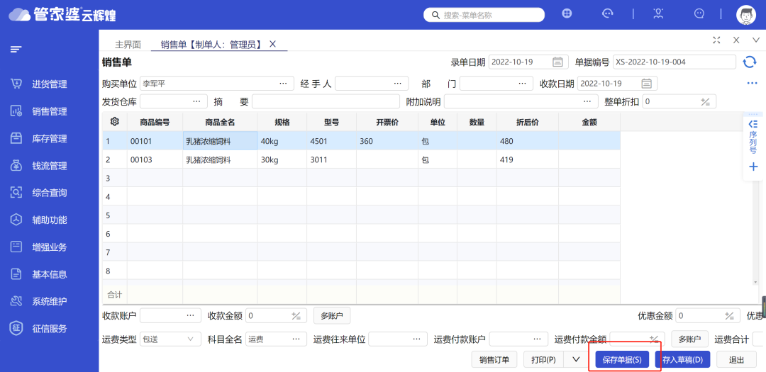 點(diǎn)擊查看大圖 四、選擇本次需要的商品,核對(duì)無誤后選擇保存。立馬生成單據(jù),省時(shí)省力,簡單高效。