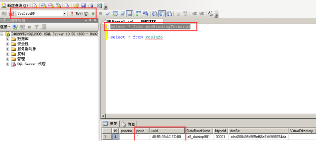 服務(wù)器上打開數(shù)據(jù)庫,對sysdataDB數(shù)據(jù)庫執(zhí)行Select * from posBindingTerminal語句,查詢所有已綁定的POS終端信息(uuid列就是電腦Mac地址,posid就是綁定的pos的地址)。