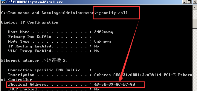 發(fā)表時間:2022-10-25 13:52作者:小管君 ![]() 打開POS錄入信息點擊確定后,提示:該POS機已經(jīng)和其他POS機號綁定,請先解綁!但是不清楚在哪里綁定了,需要怎么操作才能解綁呢? 先在客戶端查詢出電腦的Mac地址:開始—運行—輸入cmd后點確定,出現(xiàn)命令框輸入ipconfig/all回車,可以查詢到本機的Mac地址。