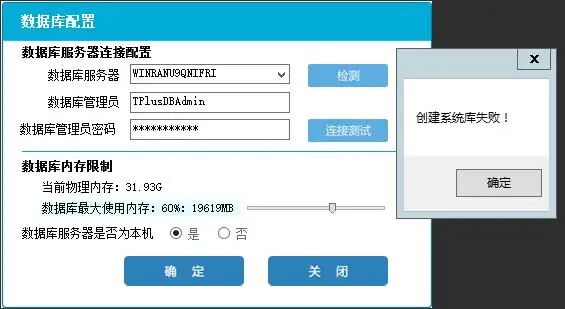 【問題現(xiàn)象】 數(shù)據(jù)庫配置提示創(chuàng)建系統(tǒng)庫失敗。