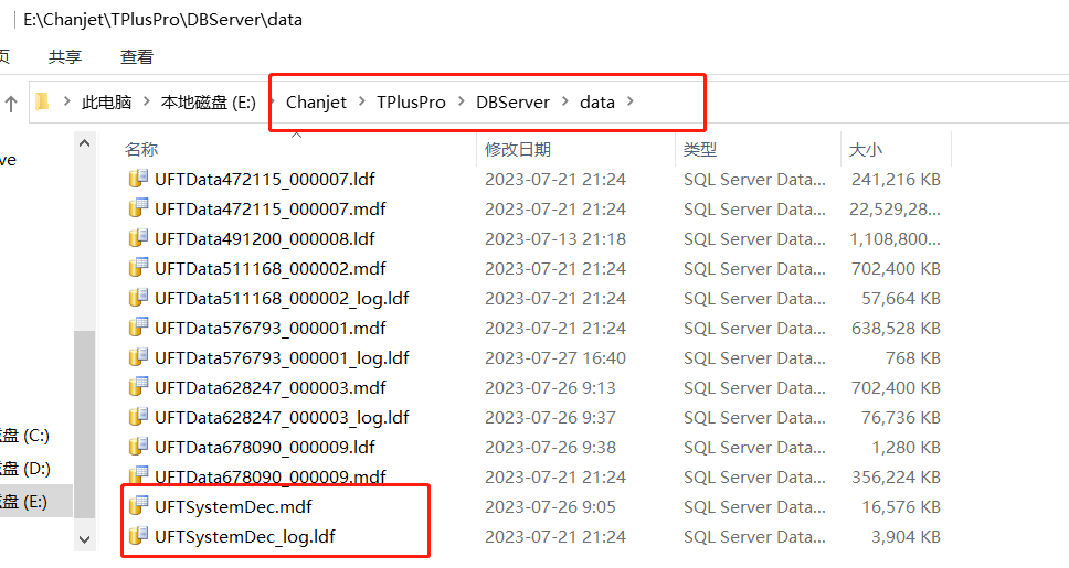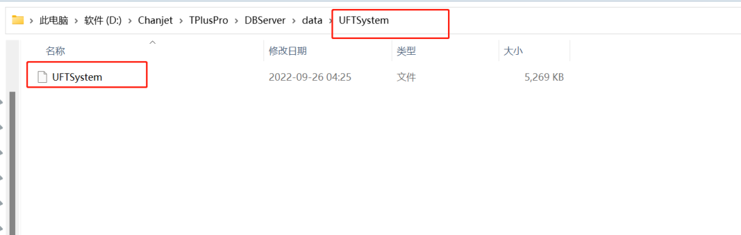 3.在軟件安裝路徑\Chanjet\TPlusPro\DBServer\data\UFTSystem文件夾下缺少了UFTSystem文件。
