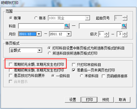 (2)依次點(diǎn)擊“總賬”-“賬簿打印”-“明細(xì)賬簿打印”,若期初無余額,本期無發(fā)生也打印”可以選擇,如圖: