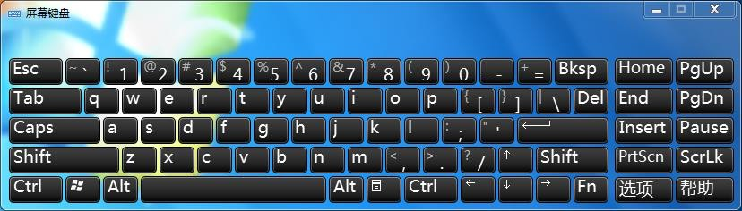 或點(diǎn)擊“開始”-“運(yùn)行”-“OSK”打開軟鍵盤;