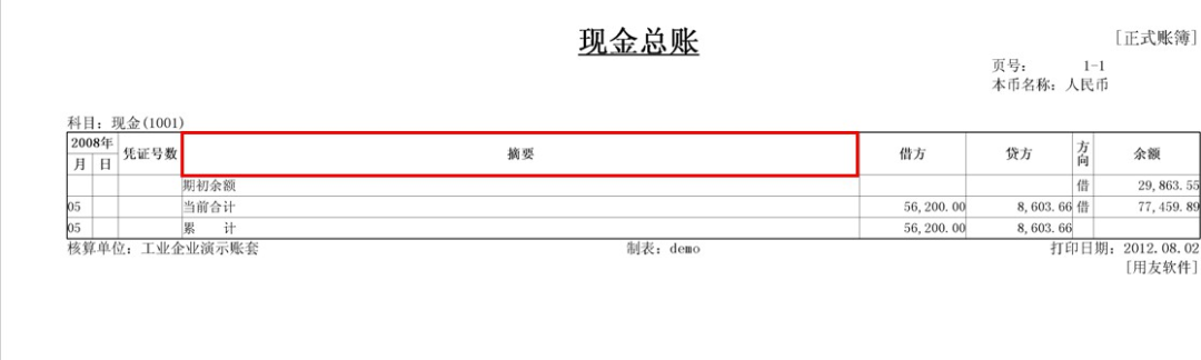 (6)依次點(diǎn)擊“總賬”-“賬簿打印”-“總賬賬簿打印”,打印出來的效果也是設(shè)置之后的: