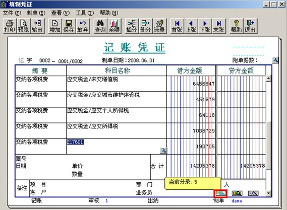 注意事項(xiàng):如果想要查看某條分錄是這張憑證的第幾條分錄,可以點(diǎn)擊右下角第一個(gè)圖標(biāo)