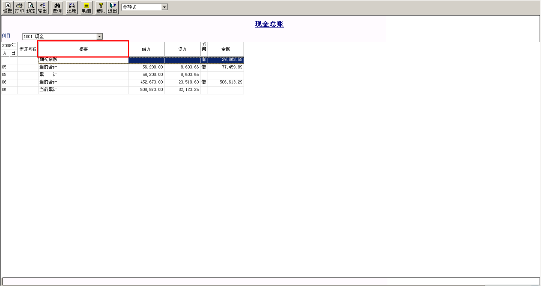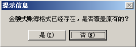 時(shí)會(huì)提示“金額式賬簿格式已經(jīng)存在,是否覆蓋原有的” ,點(diǎn)擊“是”之后,每次進(jìn)入查詢都變?yōu)榱嗽O(shè)置之后的效果。