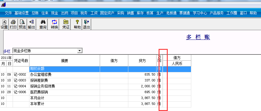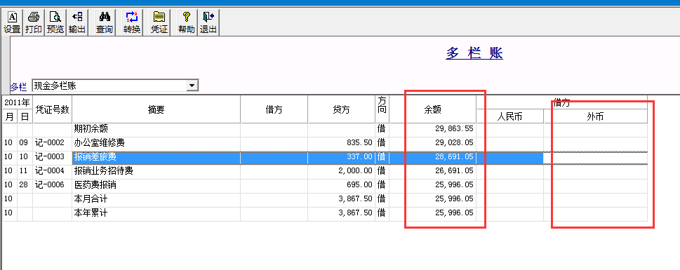 【原因分析】多欄賬有隱藏列: