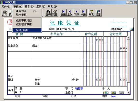 【解決方案】 方案一、依次點(diǎn)擊“總賬”-“憑證”-“審核憑證”,在審核憑證的時(shí)候選擇“標(biāo)錯(cuò)/取消”: