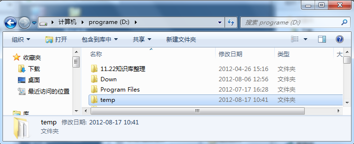 a、先在D盤新建一個(gè)temp文件夾,如圖所示:
