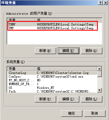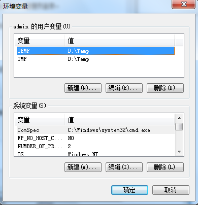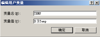 C、參考(1)中的第b步驟修改好TEMP和TMP的環(huán)境變量,點(diǎn)擊確定按鈕,如下圖所示: