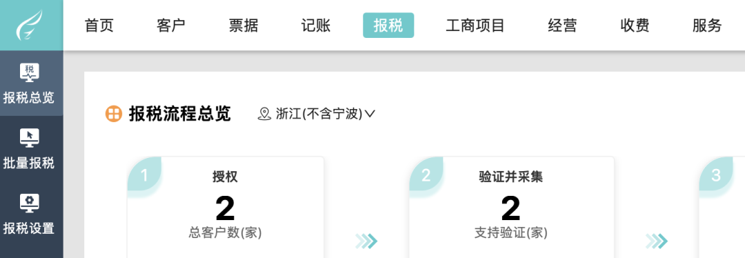工作臺(tái)——報(bào)稅,子菜單順序調(diào)整為:報(bào)稅總覽、批量報(bào)稅、報(bào)稅設(shè)置,滿(mǎn)足用戶(hù)先查看報(bào)稅匯總數(shù)據(jù)的習(xí)慣。