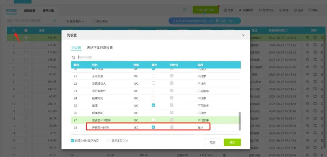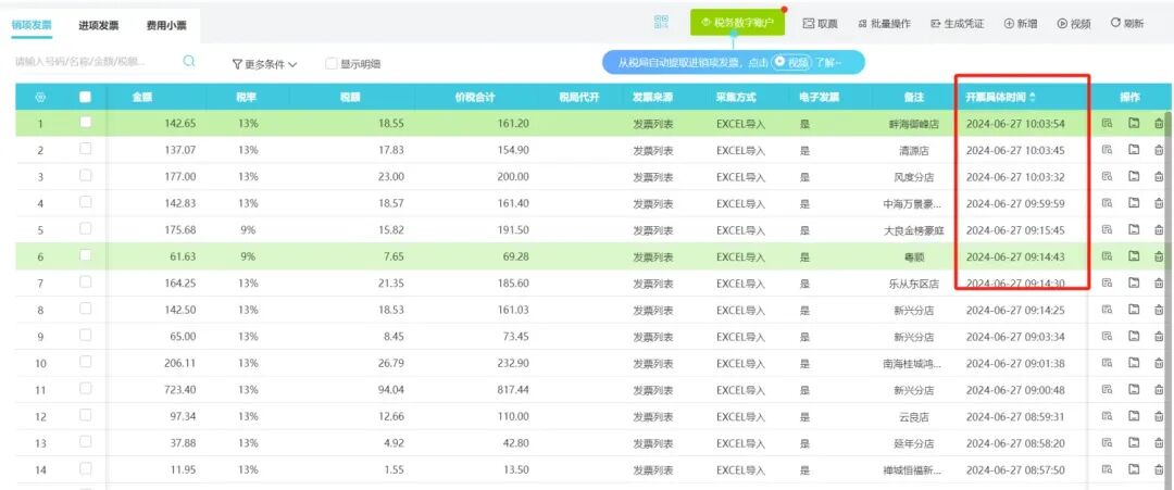 一天開(kāi)票量幾百?gòu)埖钠髽I(yè),一個(gè)時(shí)間段會(huì)集中開(kāi)票,采集到發(fā)票模塊后,期望按【開(kāi)票具體時(shí)間】也就是開(kāi)票的時(shí)分秒,排序發(fā)票,生成憑證等