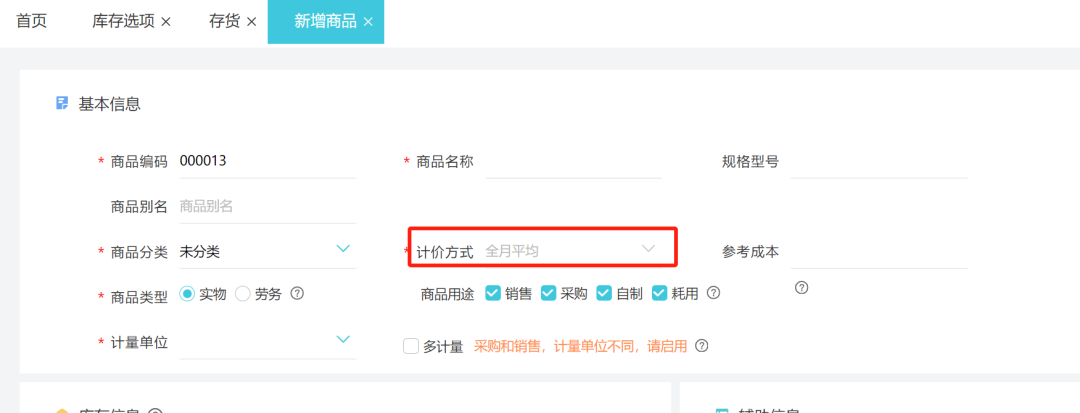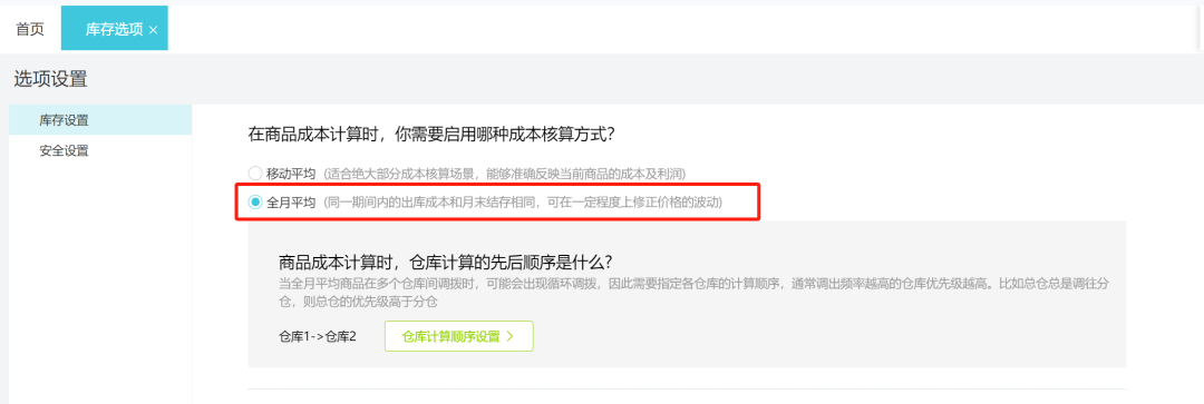 三、庫(kù)存專(zhuān)題1.全月平均法場(chǎng) 景: 全月一次加權(quán)平均法適用于,進(jìn)貨頻繁但進(jìn)價(jià)變動(dòng)不大的企業(yè) 解決方案: (1)將【庫(kù)存選項(xiàng)】成本核算方法,選擇為【全月平均法】