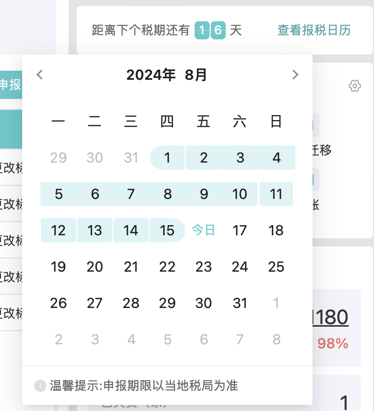 5.報(bào)稅日歷顯示當(dāng)前月的報(bào)稅日歷和提醒信息
