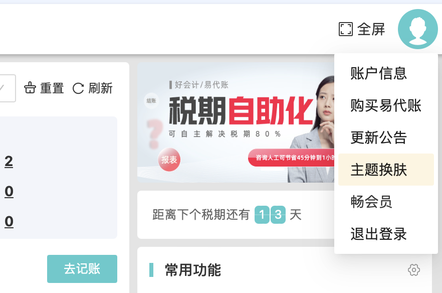8.主題換膚工作臺(tái)右上角菜單,增加【主題換膚】入口:
