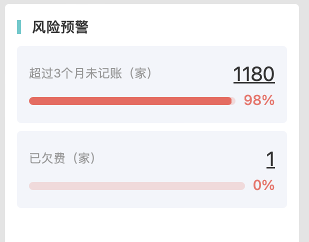 7.風(fēng)險(xiǎn)預(yù)警包括兩類(lèi)風(fēng)險(xiǎn)預(yù)警: 1)超過(guò)3個(gè)月未記賬的客戶(hù) 2)合同收費(fèi)中已欠費(fèi)的客戶(hù)