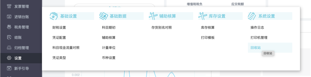 四、其他1.憑證回收站易代賬管理員用戶(hù)進(jìn)入賬套后,在【設(shè)置】菜單中可見(jiàn)【回收站】,支持憑證以及業(yè)務(wù)單據(jù),在刪除后自動(dòng)進(jìn)入回收站的機(jī)制,防止誤刪除。