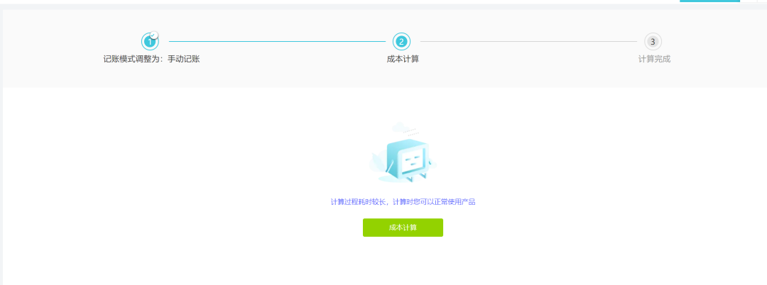 (3)如果想更快看到成本結(jié)算結(jié)果,可以打開(kāi)【手工記賬】頁(yè)面,發(fā)起成本計(jì)算