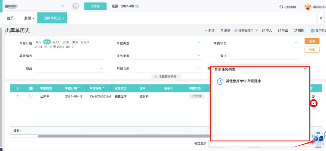 (2)發(fā)票生成庫(kù)存單據(jù),如果記賬量比較大,自動(dòng)轉(zhuǎn)為【批量成本計(jì)算】。如果在【出庫(kù)成本狀態(tài)】中一直顯示【記賬中】,想快速完成成本計(jì)算
