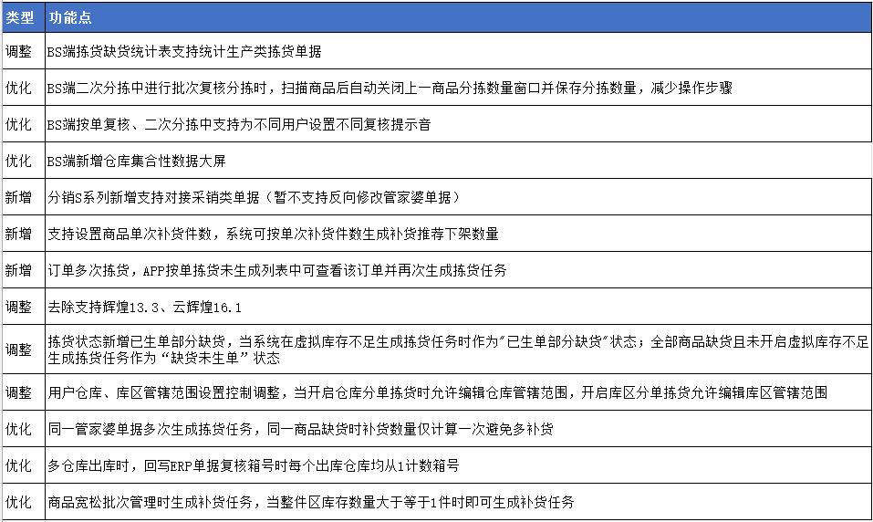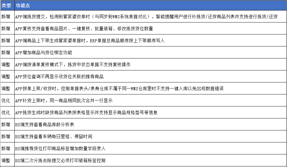 ![]() —V 7.5— 物聯(lián)通倉(cāng)配WMS 改單檢測(cè)·看圖對(duì)貨·庫(kù)齡分析·停留分析·智慧大屏 ![]() 目錄 01 APP復(fù)核裝箱改版 02 APP揀貨改單檢測(cè) 03 商品庫(kù)齡分析 04 車輛里程/停留管理 05 全新綜合大屏 06 商城訂單軌跡顯示 APP復(fù)核裝箱改版 APP揀貨改單檢測(cè) 商品庫(kù)齡分析 車輛停留管理 全新綜合大屏 商城訂單軌跡顯示 商城下單后,揀貨、打包、發(fā)貨、物流狀態(tài)即時(shí)呈現(xiàn),提高客戶滿意度、降低客戶服務(wù)成本 支持分銷S采銷單 注:當(dāng)前僅支持讀取單據(jù)并回寫單據(jù)進(jìn)度,暫不支持生單、改單、過(guò)賬 功能清單 軟件升級(jí) ![]() 更多管家婆軟件操作問(wèn)題,可以聯(lián)系梁老師17374708361 長(zhǎng)按識(shí)別二維碼添加好友,及時(shí)解答