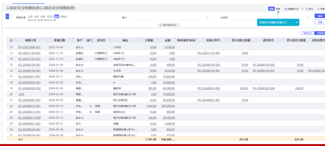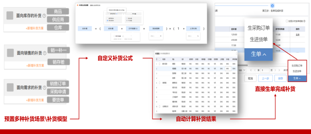 Part. 03 智能采購管理 按需精準(zhǔn)補(bǔ)貨 張老板說 :我們倉庫非常多,每次采購時(shí)候,庫存不準(zhǔn)導(dǎo)致拍腦袋進(jìn)貨的情況總發(fā)生,要么不改進(jìn)的進(jìn)多了,要么跑量快的進(jìn)少了,很難找到一個(gè)平衡點(diǎn),單純靠經(jīng)驗(yàn)。 好業(yè)財(cái) : 1. 按需智能補(bǔ)貨:比如根據(jù)庫存、銷售情況、或需求訂單精準(zhǔn)計(jì)算需要補(bǔ)多少貨,并且系統(tǒng)自動生成下游進(jìn)貨單據(jù),既能保障庫存滿足銷售,又能避免庫存過量占用資金 2. 采購明細(xì)清晰管理:采購進(jìn)貨的發(fā)票、應(yīng)付款、合同款、已入庫、未入庫等金額、數(shù)量,都能管理的清楚明白 3. 以銷定采全流程管理:根據(jù)銷售訂單自動流轉(zhuǎn)到采購單據(jù),進(jìn)貨與銷貨明細(xì)流轉(zhuǎn)、追蹤情況,一個(gè)圖表上管理清楚 按需精準(zhǔn)采購