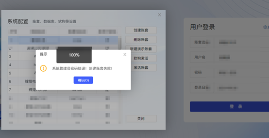 處理方法:瀏覽器兼容模式訪問導(dǎo)致異常,切換為極速模式后重新訪問即可 現(xiàn)象二:輝煌 ERP16.3版本,已經(jīng)進(jìn)入賬套創(chuàng)建界面,創(chuàng)建賬套時(shí)提示報(bào)錯(cuò)“系統(tǒng)管理員密碼錯(cuò)誤,創(chuàng)建賬套失敗
