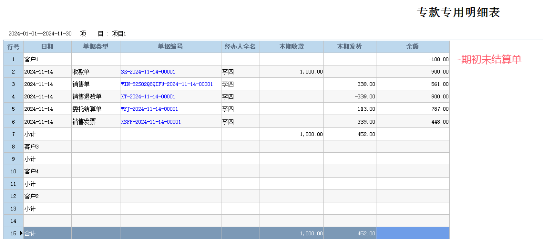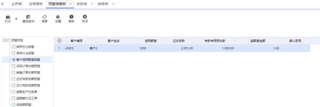05 報表查看 業(yè)務報表—項目報表—??顚S脜R總表/明細表 06 項目結束 預警信息板—客戶信用額度預警 “超額度金額” = “應收賬款” – “專款專用預收款” – “信用額度”,只有超額度金額大于零的才會報警 ![]() 場景 1:客戶銷售收款,想要根據(jù)部門出對賬單,可以實現(xiàn)嗎? 應用:可以把項目當做部門來使用,勾選??顚S?,做銷售單和收款單的時候選擇對應部門(即項目),后續(xù)就可以查看對應的??顚S妹骷毐怼?/p> 場景 2:采購/銷售單能設置起來不能超過訂單多少百分比發(fā)貨嗎? 應用:可以使用插件“訂單超交比例控制” ![]() 問1:結束專款,還有專款余額要怎么做呢? 答:做收款單,錄入正負數(shù)金額計入預收去調(diào)減