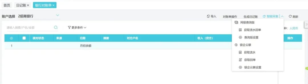 1、【銀行采集】日記賬和銀行對(duì)賬單增加銀行查詢版采集方式,可對(duì)15家銀行采集流水和回單,生成日記賬系統(tǒng)自動(dòng)匹配回單,日記賬生成憑證后,憑證附件自動(dòng)掛接回單可一起打?。?/span>
